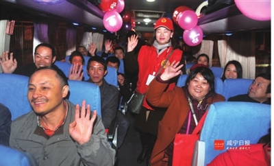 “咸宁老乡,欢迎回家,这里是咸宁接友团……”1月31晚,由广东湖北商会发起的“暖冬行动”爱心直达免费专列,满载着1500名湖北籍老乡从广州站始发,于当天晚上11时35分到达武昌站,我市6县(市、区)组织了6台“爱心大巴”提前在武昌站等候,接送97名咸宁老乡平安回家。