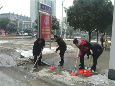 活动当天,天气十分寒冷,市老龄办干部职工或步行或打车按时赶到扫雪地点。市老龄办邬传来主任亲自带队,一到包保清洁区,就挥起铁锹开始铲雪,大家自觉分路段开始了热火朝天的清雪行动。经过两个多小时不停歇的奋战,一条长长的人行道的积雪全部被清除干净,保障了市民的安全出行。 (蒋静静)