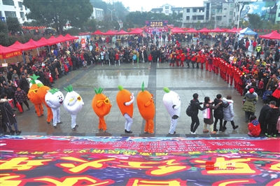 2月10日,第二届高桥民俗文化年货节在高桥镇广场浓情启幕,来自武汉、温泉城区以及周边的游客冒雨赏民俗、办年货、赏美景,千余人共聚一堂共享百喜团年饭,实地感受全省首个田园综合体试点、高桥特色萝卜小镇的独特魅力。