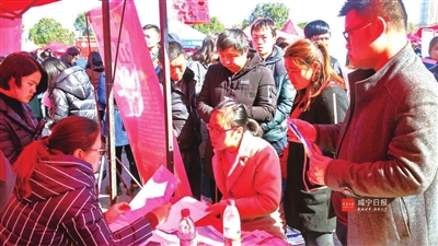 招聘会上,许多企业打出节日福利、五险、旅游、休假、奖学金、孝顺金及在职晋升等暖心福利,吸足了求职者的眼球。