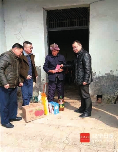 本报讯 (通讯员 朱和清) 2月11日,中华保险咸宁中支开展“保险扶贫,慰问走访”行动,中支副总经理雷应军、机关党支部组织委员吕世平、嘉鱼支公司经理李权组成慰问小组为贫困家庭送上米、油、牛奶、苹果等慰问品,严格落实“精准扶贫”政策,体现出党和政府、中华保险对贫困群众的关心和帮助。