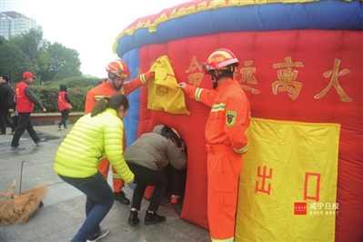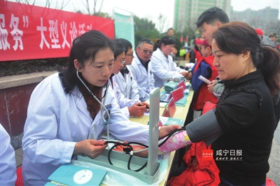 上午9时30分许,简短的启动仪式结束后,现场志愿者分头行动。来自湖北科技学院附属第二医院的医生为群众义诊,倡导健康生活;来自咸宁消防支队特勤中队的官兵,把消防器材和模拟烟室带到现场,普及消防知识和逃生技能;来自市直单位和志愿者团队的队员,现场普及交通、法律、卫生、禁毒知识……