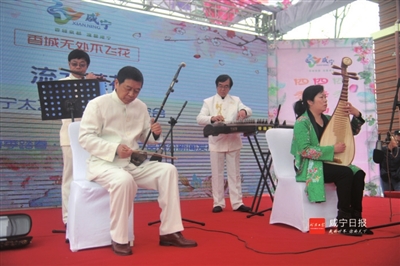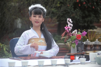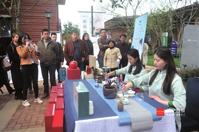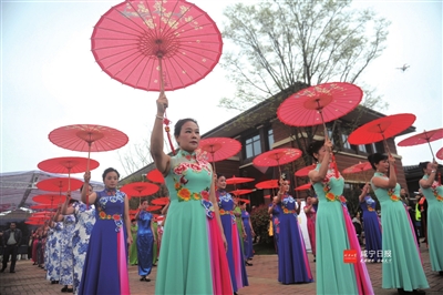 赏心悦目的旗袍文化展示、茶香氤氲的茶艺茶道表演、行云流水的现场挥毫泼墨……在发布会现场,除了中国传统文化艺术项目表演外,还有咸宁赏花宣传片的播放、旅游特色商品的展示以及咸宁特色花卉的彩绘,都尽显咸宁自然美、人文美、春光美,点燃现场热情。由咸宁本土女作家谢望梅女士原创诗歌朗诵《香城无处不飞花》、 《竹林听雨》、《印象咸宁》等节目的精彩呈现,更加衬托出本次赏花发布会活动主题,充分展现了咸宁本地特有的人文面貌。