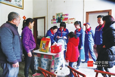 近日,中石化咸宁分公司团委组织青年志愿者来到精准扶贫点——通山县横石潭镇彭家垅村,为这里的留守老人和留守儿童送去了牛奶、大米等生活物资,让他们感受到企业的温暖和关爱。 (记者 方达星 通讯员 王立)
