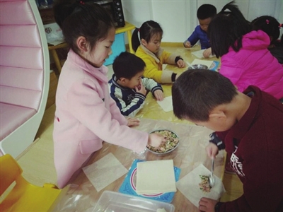 春分已至,市直机关幼儿园小朋友在老师带领下,一起动手包春卷,以此来迎接二十四节气中的“春分”。