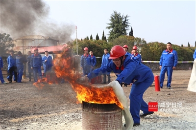 近日,中石化咸宁公司邀请咸安区消防大队在徐家湾油库开展消防灭火应急演练,该公司40余人参加。