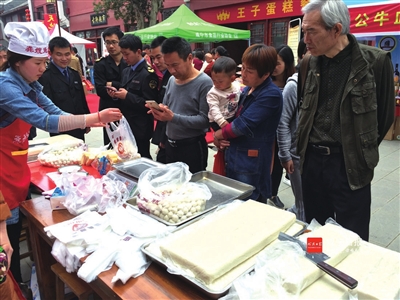 “我家的油面选用的是农家小麦粉,配以山茶油,和的是山泉水,采用纯手工制作,健康养胃……”3月30日上午,来自通山必发食品有限公司的林旺正在向过往市民推广油面。