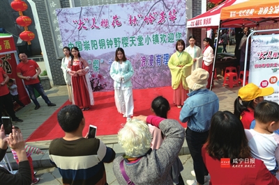 “樱”为有你,浪漫有理。大岭村锣鼓队展示特色锣鼓、樱花仙子推荐甜茶……3月30日至31日,崇阳铜钟野樱小镇以节目展演和特色产品展示的形式,着力推荐该镇特色旅游资源。