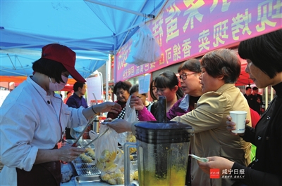 一旁的水果蛋糕展台前,说起这3天的销量,老板熊朝功也是掩饰不住的高兴。“我这销量还可以吧”,看着络绎不绝的顾客,熊朝功颇有些低调。