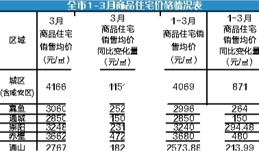 3月份,全市商品房销售总金额19.87亿元,商品住宅均价3278元/㎡,比去年同期高出392元/㎡。1—3月份,全市商品房销售总金额41.72亿元,商品住宅均价3234元/㎡,比去年同期高出378元/㎡。
