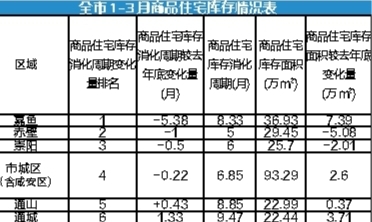 全市去库存工作继续有效推进。截至3月,全市商品住宅库存面积230.8万平方米,库存较去年底下降8.34万㎡,消化周期7.19个月,较去年底下降0.67个月。其中市城区(含咸安区)商品住宅库存面积93.29万平方米,消化周期6.85个月,较去年底减少0.22个月。
