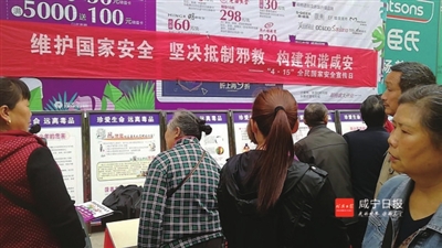 4月16日,咸安区温泉街道办事处、永安街道办事处分别在温泉潜山商业街、银泰百货门口组织开展国家安全日宣传教育活动。活动中,温泉村、白茶社区、南大街社区、中心戒毒社区等村、社区上千群众积极参与,学习贯彻习近平总书记总体国家安全观,并就扫黑除恶、反邪教、禁鞭禁毒禁赌、法治平安建设等工作进行观摩学习。