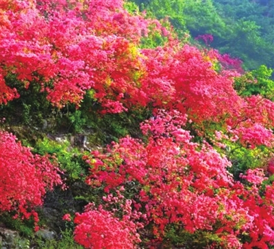 美景:黄龙山的杜鹃以其颜色艳丽,层次丰富而著名。站在山顶,极目远眺。起伏的山峦一片翠绿,近看,鲜艳的杜鹃花一片火红。最佳赏杜鹃处当属只角楼风景区。