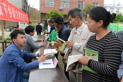 市科技局组织的市农科院果树、蓄牧、水产和水稻专家开展现场技术咨询和指导,被村民们团团围住。刘家岭村7组的金春红挤到果树专家郑丽桌前,急切地问:“我们家种了十几亩猕猴桃,现在苗木开始缠绕,是不是要浇水泥柱了?”在听了郑丽的专业回答后,金春红如释重负,拿着现场发放的实用栽培技术资料满意离去。