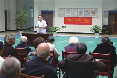 义诊结束后,老年病科主治医师袁果进行了“老年人膳食指导及中医食疗”的专题讲座,耐心地从老年人合理膳食安排,高血压、糖尿病、痛风患者膳食指导,中医药膳等方面给了老年人很多科学合理的建议,深入浅出、丰富生动的讲解赢得了听众的阵阵掌声,不少老人竖起了大拇指点赞。