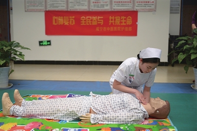 义诊活动火热进行的同时,医护人员还现场为福利院工作人员和福利院老人的家属演示了如何进行心肺复苏急救,重点讲解了关于心肺复苏按压方法及人工呼吸技巧。