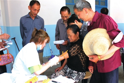 在活动现场,医护人员为村民开处方、指导用药,免费进行验血、量血压、B超、尿常规、心电图等检查。专家们认真聆听患者病情陈述、询问患者生活习惯、耐心解答就诊村民咨询的健康问题,并对常见病、多发病、健康保健等进行指导。为让更多贫困村民享受免费义诊,活动分设在大溪村卫生室和潘家湾两地进行义诊,并为患者建立了个人健康档案,现场约110人接受了免费的疾病诊疗服务。