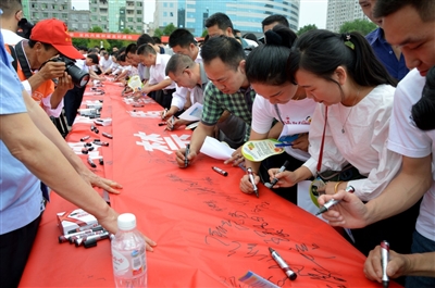 5月29日下午,通山县在政府广场隆重举行万人禁赌禁毒签名活动。县政府主要领导、县直部门主要负责人和干部职工代表、学生代表、禁毒志愿者代表共计10000余人参加签名活动,倡议禁毒禁赌。