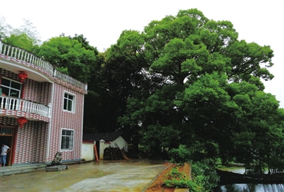 在古樟树旁边,一栋新建不久的独栋楼房尤为惹眼,此树管护人王龙就住在此处。王龙介绍,他今年47岁,小时候此树就是孩子们的乐园,小伙伴们经常在树下游戏玩耍,不过却很少爬上树,因为在当地村民心目中,这棵树一直就是“风水宝树”。