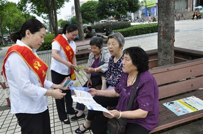 为做好防范和处置非法集资工作,教育公众树立正确的金融消费观,积极营造健康和谐的金融消费环境。6月5日上午,嘉鱼农商行该行组织人员深入到乡村、居民社区、集贸市场、车站、广场公园等人流密集处,向社会公众宣传反对非法集资专项宣传活动,增强他们的自我防范和风险自提意识。活动当天共发放宣传资料2000余份,接受群众咨询1600余人次。图为工作人员向市民宣讲非法集资的危害。 (叶和平 杨惠春)