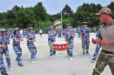 绳圈自上而下穿过身体,却不能触碰,讲究协调性的《人体扫描》项目 难不倒同学们。10来人后手搭前肩、前手托后脚,单脚起跳前进不能散的《动力 火车》则让同学们学会了集体合作的重要性。而用绳子编织绳床,则让同学们在 学到户外技能的同时,又锻炼了自己的创新和动手能力......一个个有趣而不简 单的活动,让同学们乐在其中,忘却了夏日的炎热。