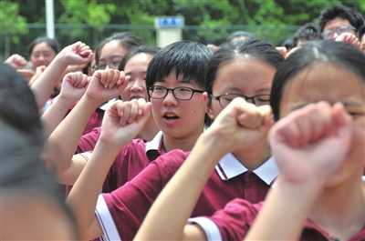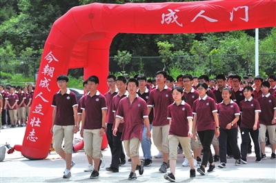 “不论有18岁,还是未满18岁,在今天这个特殊的仪式上,你们都成年 了。”上午9时许,成人礼开始。同学们簇拥在国旗和共青团旗下,跨过“成人门 ”,以宪法为证,高举右手宣誓,宣告从此长大成人,正视责任、履践德行。