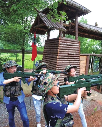 本报讯 (记者 叶子 通讯员 李德文) 6月2日,记者在嘉鱼玉龙岛庄园看到,不少来自咸宁周边省市的游客带着家人来到这里,体验真人CS游戏。