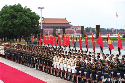 新华社消息 国家主席习近平6日下午在人民大会堂东门外广场举行仪式,欢迎来华进行国事访问的吉尔吉斯斯坦总统热恩别科夫。记者发现,改革后的国事访问欢迎仪式当天首次启用。
