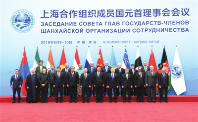 6月的青岛,风景如画。国际会议中心外,碧海蓝天,与会各国国旗、上海合作组织会旗和与会国际组织旗帜迎风飘扬。上午11时许,会议正式开始。