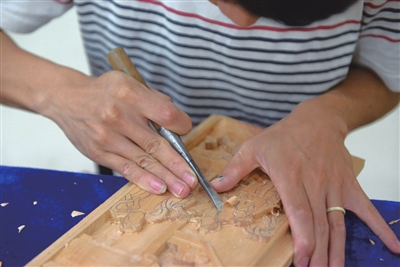 28岁的小伙子朱容国,是熊应华的徒弟之一,从14岁开始学习木雕,他雕刻的花开富贵图,市场价不低于1.8万元。