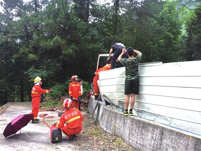 本报讯(记者 王奇峰 通讯员 雪雁鸣 陈熙)近日,九宫山风景区中港村境内发生一起货车侧翻事故,所幸车内3人全部获救,没有生命危险。