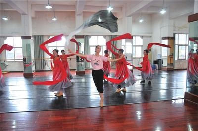 细腻舒缓的音乐,舞者化身水墨精灵,婀娜地出现在舞台上,时而聚集成团,时而迤逦如线……6月8日,市歌舞剧团的排练厅气氛紧张又热闹,市歌舞团的演员们加紧地在排练,一个动作就要练上无数遍。
