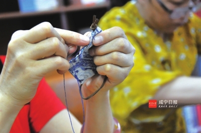 第一次制作的香包虽然不是十分精美,但是有一种小小的成就感。“这是我人生中做的第一个香包,我一定要把它送给我的孩子,因为不仅避蚊驱秽,还有吉祥如意的祝福,最最重要的是我亲手做的,我相信他一定会喜欢!”刚刚做完香包的图书馆工作人员骆文高兴地说。