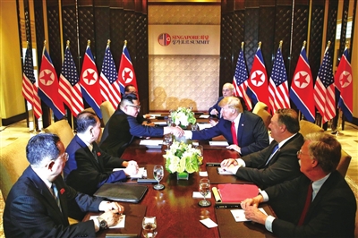 朝鲜国务委员会委员长金正恩与美国总统特朗普12日在新加坡举行两国在任领导人史上首次会晤,并签署了一份联合声明。