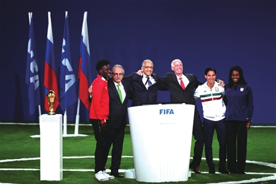 13日在莫斯科会展中心举行的国际足联第68届大会上,经过现场有投票资格的203个国际足联会员协会的投票表决,加、墨、美三国最终以134:65票击败摩洛哥,赢得了2026年世界杯足球赛的联合举办权,其中有1票选择的是两边都不同意,另有3票无效。