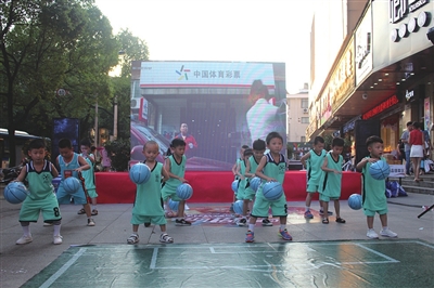 “嘭,嘭,嘭嘭……”整齐而又有节奏的拍球声,伴随着动感的音乐,响彻夜空。来自武汉颂大童心·温泉红缨幼儿园的萌娃们个个精神饱满、动作标准,队形整齐、变换有序,一招一式中透露出童趣、天真和自信,用激情与梦想为当晚正在播出的世界杯赛事喝彩。