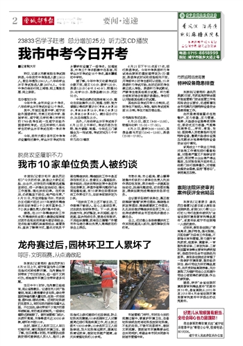 我市中考今日开考