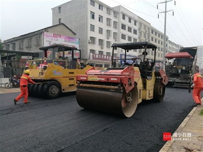 6月19日上午,记者在城区锦龙路看到,该道路十六潭路至金桂路段施工正酣,工程车辆正在来回铺设沥青。