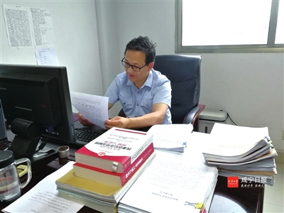 在记者的印象中,这个年近半百的老黄有点“不识时务”。今年4月,院里和局里把两个“评先”指标(市中院推出“优秀执行干警”典型在媒体进行宣传)中的一个给了他,要他抽出时间接受记者专访。可记者三次去崇阳法院找他采访,他不是在外办案就是在办公室接待申请执行人,对记者的“盛情邀请”用一句“没时间”给打发了。6月22日晚,利用晚饭后的空隙,这位“不识抬举”的大忙人终于答应了记者的采访。
