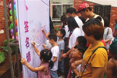 在毕业签名墙上,每组家庭都恋恋不舍的写上了对幼儿园的不舍和祝福,并签下了自己的名字。随后,各班孩子在家长的带领下,来到幼儿园三楼多功能厅,统一换上象征毕业的“学士服“,和老师们一起记录下在园的精彩瞬间,留下对幼儿园欢乐时光的美好记忆。