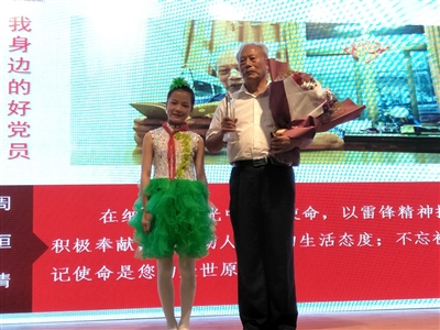 75岁的周恒清是雷锋的战友,也是咸安区林业局退休的党支部书记,他在职期间,坚守雷锋精神,多次被评为先进工作者,退休后发挥余热,积极为咸安林业的发展献计献策;阚光辉是一名抗美援朝的老兵,如今86岁的他依然坚持打扫街道卫生;马志明曾是飞行员,开过歼-5、歼-6战斗机,转业后现任浮山办事处梅园社区第二党支部书记,他用实际行动鼓励并影响了周围一批党员……他们的先进事迹,让在场的每一个人都为之感动。