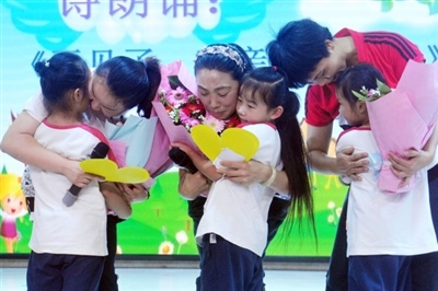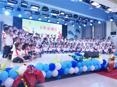 老师们春风化雨,孩子们知恩感恩。当满含深情的《毕业歌》前奏响起,离别的依惜之情更浓,许多孩子开始掉泪。歌唱到一半,舞台上已经“哇”声一片,在场的学生和家长们也热泪盈眶。在为老师献花的环节,不少孩子和老师紧紧拥抱,嚎啕大哭:“老师,我爱你!”“老师,我不要离开你!”“我一定会回来看你们的!” 现场哭声一片。