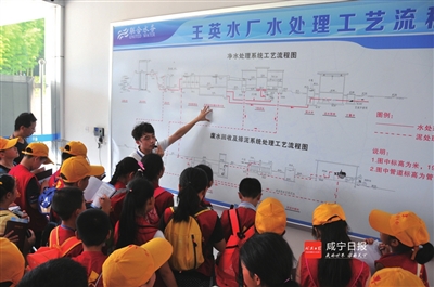 我们生活中的自来水从何而来?怎样流入千家万户?自来水厂的实验室是干什么用的?昨日,本报近百名小记者,身穿红马甲、头戴小黄帽、手拿采访本,来到咸宁联合水务公司王英水厂,参观了自来水的生产工艺,了解了城区生产与官网调度系统、废水回收及排泥系统处理工艺的相关工艺。