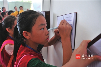 “听说咸宁实验外国语学校有同学擅长打武术操,有没有人来给大家展示呀?”主持人一语落地,咸宁实验外国语学校的胡子健自告奋勇,一边口中振振有词的背诵《三字经》,一边手握拳头打武术操,瘦小的身体,每一个动作刚劲有力,赢得了在场观众的阵阵掌声。市实验小学的张扬有着五年的拉丁舞学习经历,挺拔健美的身姿,像美丽的蝴蝶般飞舞着,像婀娜多姿的柳条样扭动着,美得让人陶醉。然而美好的时光总是很短暂,活动结束时,小记者们都意犹未尽。