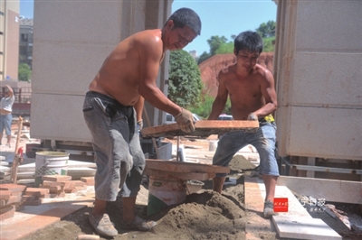 虽然酷暑难耐,但工人依然在工地上挥汗劳作,用汗水为高楼打下坚实的基石。街道上的环卫工人,时刻挥舞着扫帚,保证街道干净。勘测员带着仪器穿梭在大街小巷,只为得到准确的数据信息,用于城市规划建设。园林工人则用剪刀和清水,保持城市绿化的盎然生机……