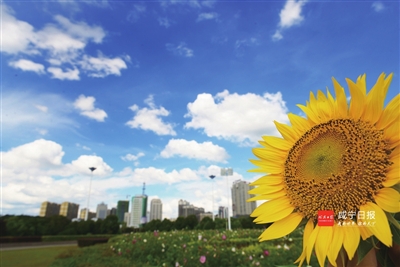 人民广场上,向日葵竞相绽放,蔚为壮观,市民在金色的葵花海中漫游,拍下一幅幅美美的照片,留住夏天的记忆。