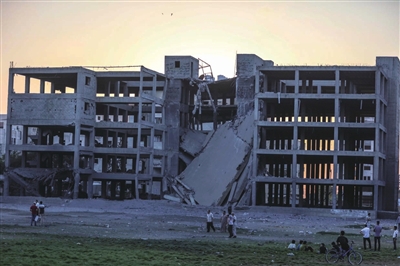 加沙地带卫生部门官员说,加沙城那幢楼房遭以军空袭时,楼内没有人,但身处附近公园的两名十五六岁巴勒斯坦少年丧生,十多名路人受伤。照片显示,那是一幢没有完工的5层楼房。