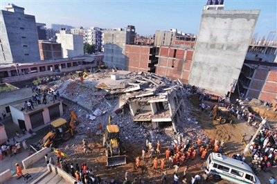 在印度,建筑物倒塌事故时有发生,主要原因有建筑物老旧、天气恶劣、施工不规范等。