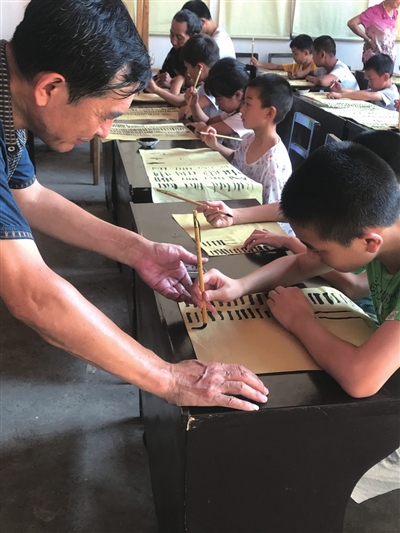 本报讯(记者 王奇峰 通讯员 孙雨 李香豫)近日,通山县闯王镇坳坪村上陈自然湾的家族宗祠内,一群孩子端坐在课桌前,手持毛笔在纸上一笔一划地书写。原来,是该村一位在外工作的书法爱好者陈明耀每周定期回乡,给村里的留守孩子义务上“国学书法课”,以丰富孩子们的暑期生活。