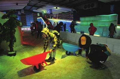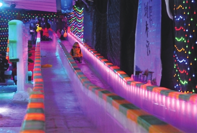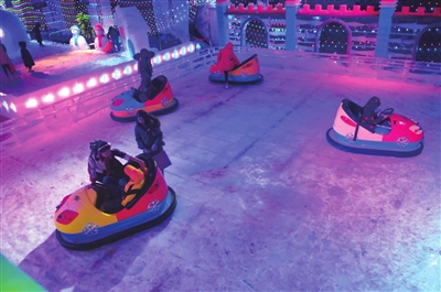 不仅如此,冰雪乐园里还有欧式冰冻城堡、爱基斯摩人冰屋、冰上骑行、冰上碰碰车、冰上滑梯等冰上“建筑”和娱乐设施,其乐无穷。